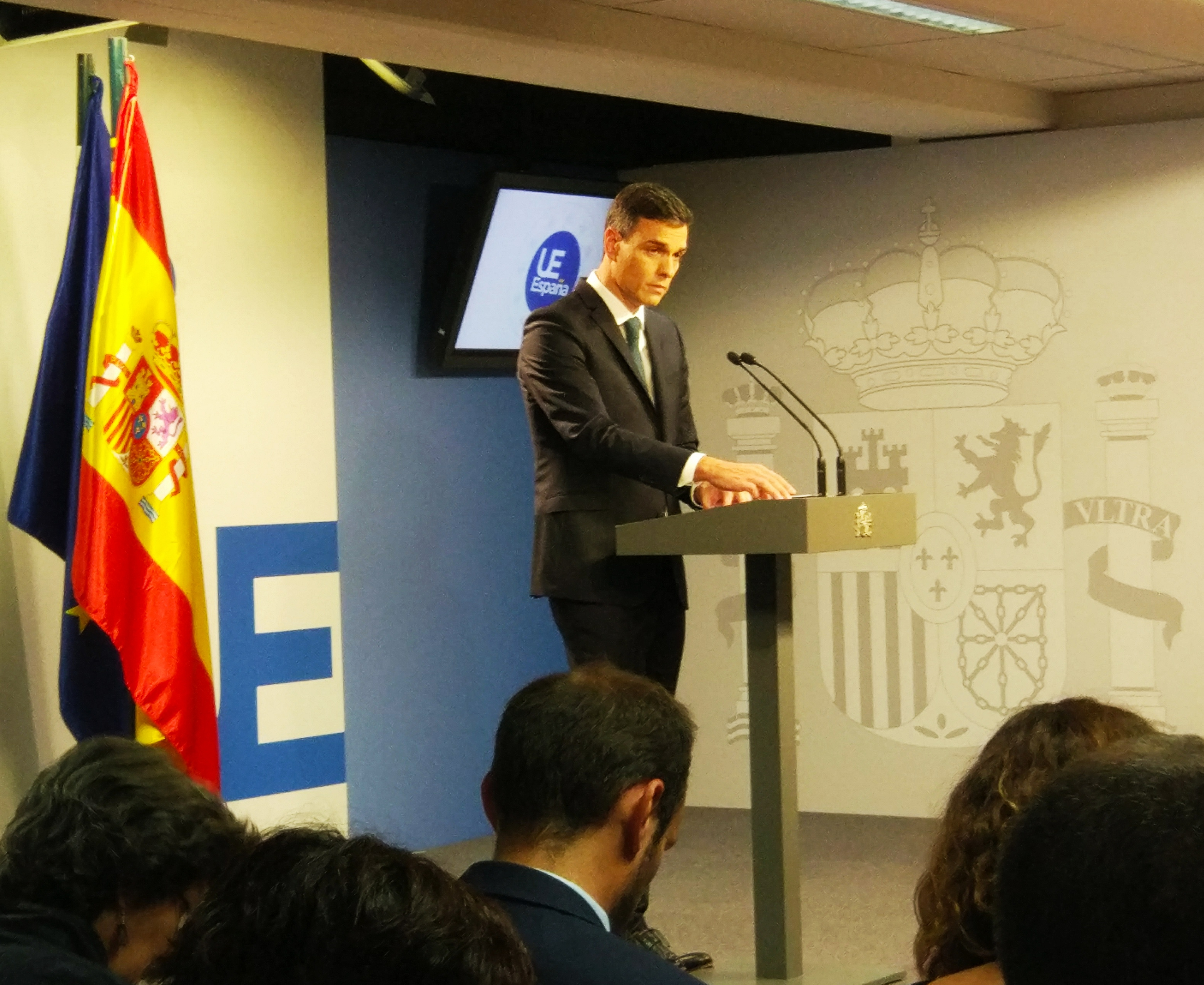 El presidente del gobierno español, Pedro Sánchez, durante una rueda de prensa // Elisa Manrique