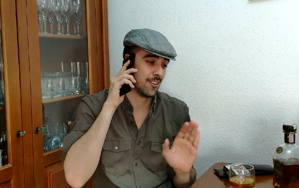 El actor Carlos Manrique al teléfono // Elisa Manrique