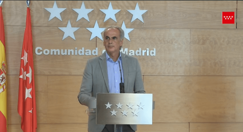 “La pandemia en la comunidad está estable y controlada … no estamos alarmados” anunció el consejero, y pidió que los madrileños estén tranquilos pero que “no hay que relajarse ni confiarse” y apeló a la responsabilidad individual.