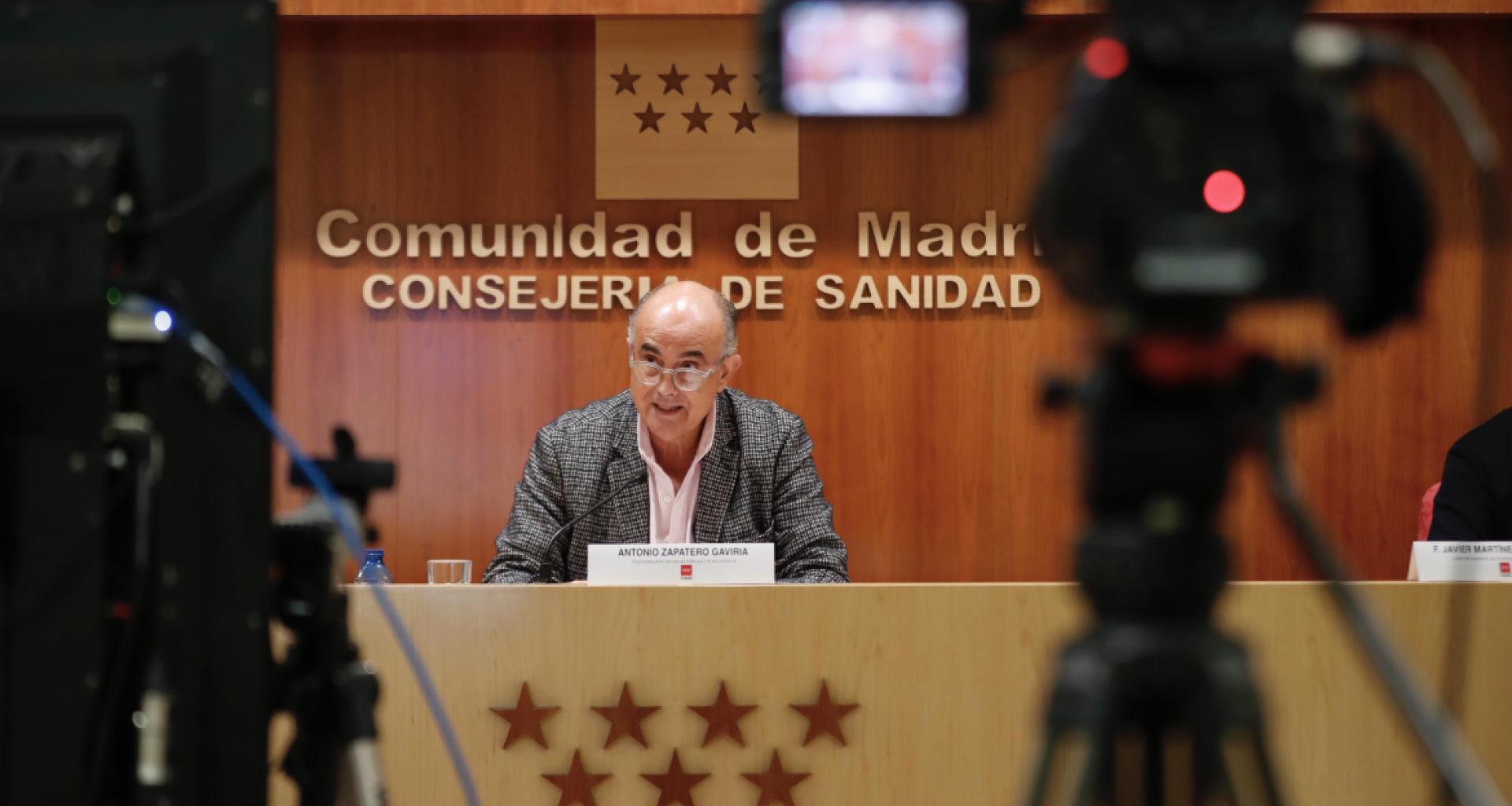 El viceconsejero de Salud Pública y Plan COVID-19, Antonio Zapatero, comparece hoy en rueda de prensa en Madrid // La Comunidad de Madrid