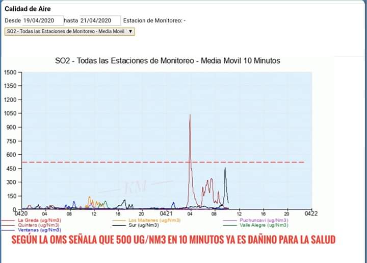 Sin embargo, estos valores por encima de la norma de SO2 se dan en periodos más cortos de una hora, para lo cual todavía no existe normativa.