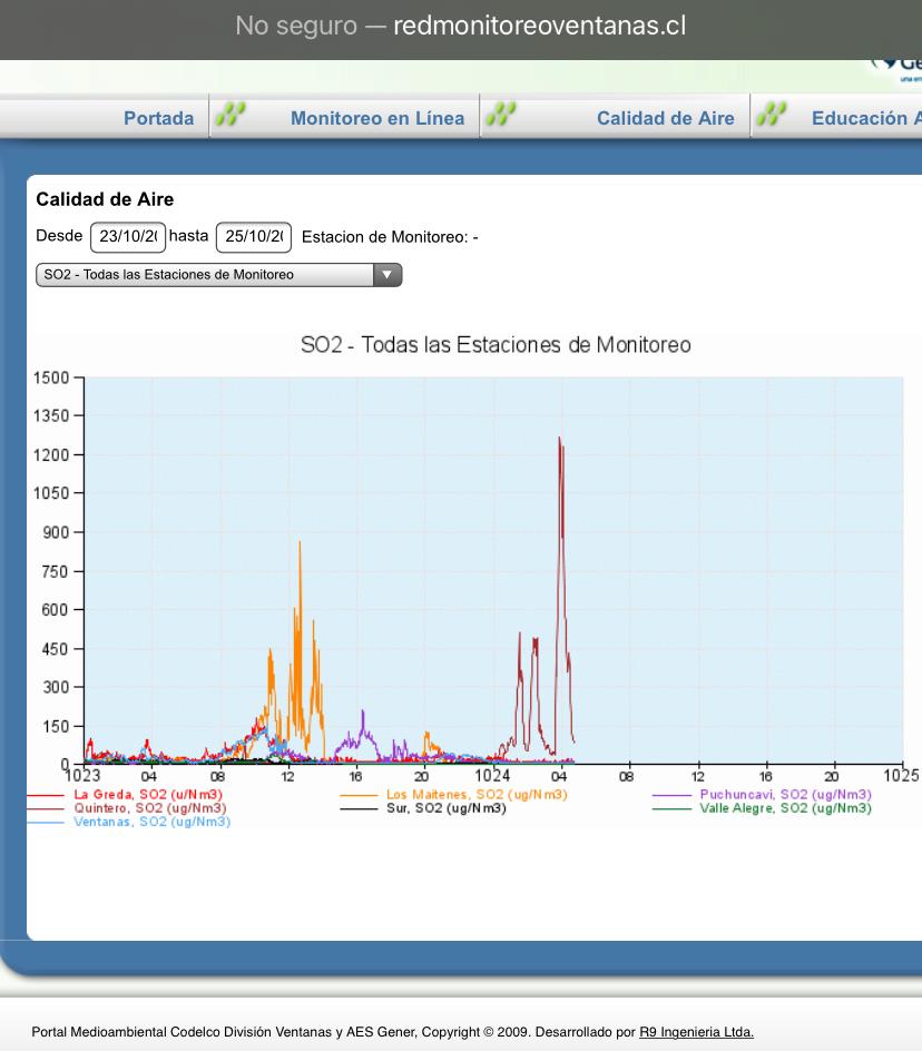 “Nueva intoxicación por dióxido de azufre de 31 alumnos y 12 profesores en La Greda de Puchuncaví vuelve a poner en la mira las faenas de Codelco Ventanas”. (El Mostrador, noviembre 2011).