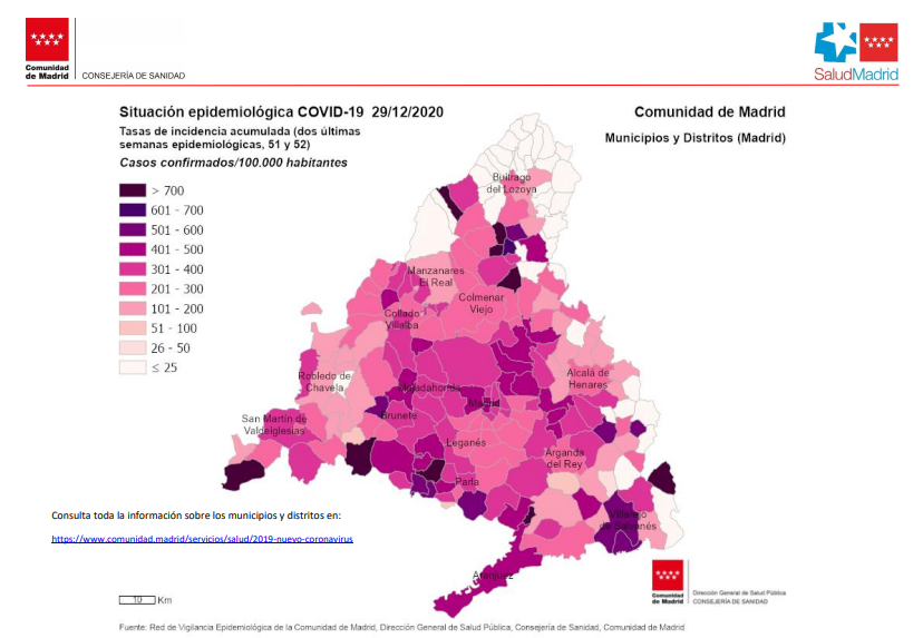 El lunes 4 de enero a las 00 horas no se podrá salir ni entrar (durante 14 días), salvo causa justificada, en las zonas básicas de salud (ZBS) de Hortaleza (Virgen del Cotijo), Alcobendas (Marques de la Valdavia y Alcobendas-Chopera) Aranjuez, (Las Olivas y Aranjuez). En San Fernando de Henares (San Fernando y Los Alperchines).