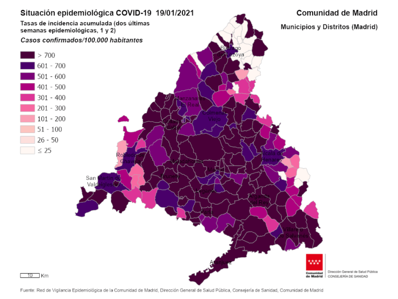 Las nuevas zonas que se empezarán a aplicar estas restricciones a partir del próximo lunes 25 de enero y que tendrán una vigencia, en principio de dos semanas, son: Cercedilla, Navacerrada, Los Molinos, Collado Villalba, Rivas Vaciamadrid, Alcorcón, (La Ribota, Ramón y Cajal, Doctor Laín Entralgo y Doctor Trueta), Getafe (Las Ciudades), Colmenar de Oreja, Quijorna, Serranillos del Valle.