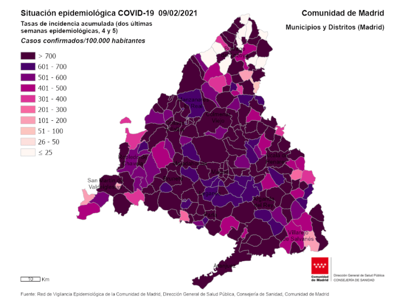 Pese a la tendencia descendente de la región la Consejería ha anunciado siete nuevas zonas básicas de salud y una localidad en las que no se podrá entrar ni salir salvo causa justificada a partir del lunes 15 de febrero a las 00 horas: Torrejón de Ardoz,( seis ZBS), el Álamo y la zona básica de Moralzarzal.